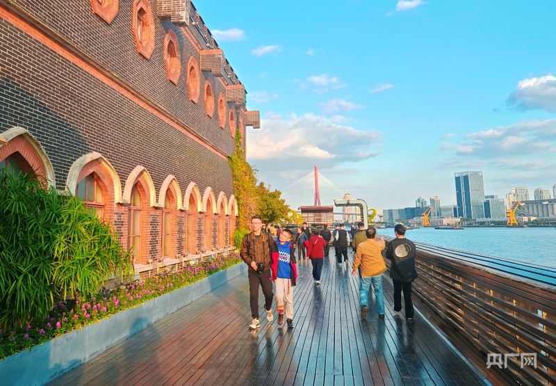 2024年11月,市民游客在上海杨浦滨江沿线漫步 (央广网记者 冯丽 摄)