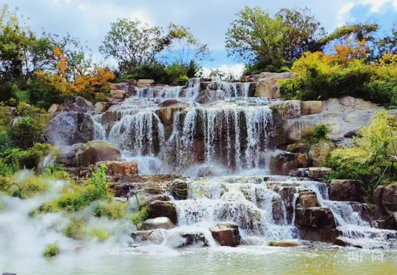 “双子山”中的迷你版“黄果树”瀑布 (央广网记者 林馥榆 摄)