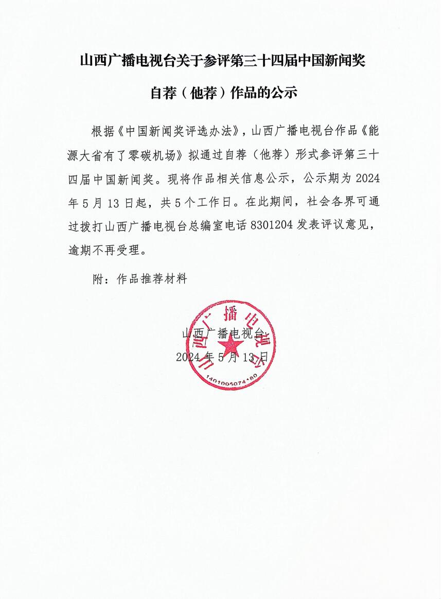 山西广播电视台关于参评第三十四届中国新闻奖自荐(他荐)作品的公示-开玩棋牌ky66